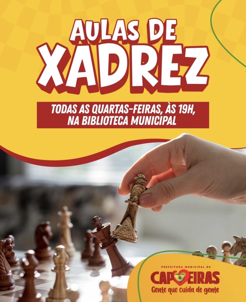 A Prefeitura de Capoeiras, por meio da Biblioteca Municipal, convida a população para participar das aulas de xadrez, proporcionando um espaço de aprendizado, estratégia e convivência para pessoas de todas as idades.