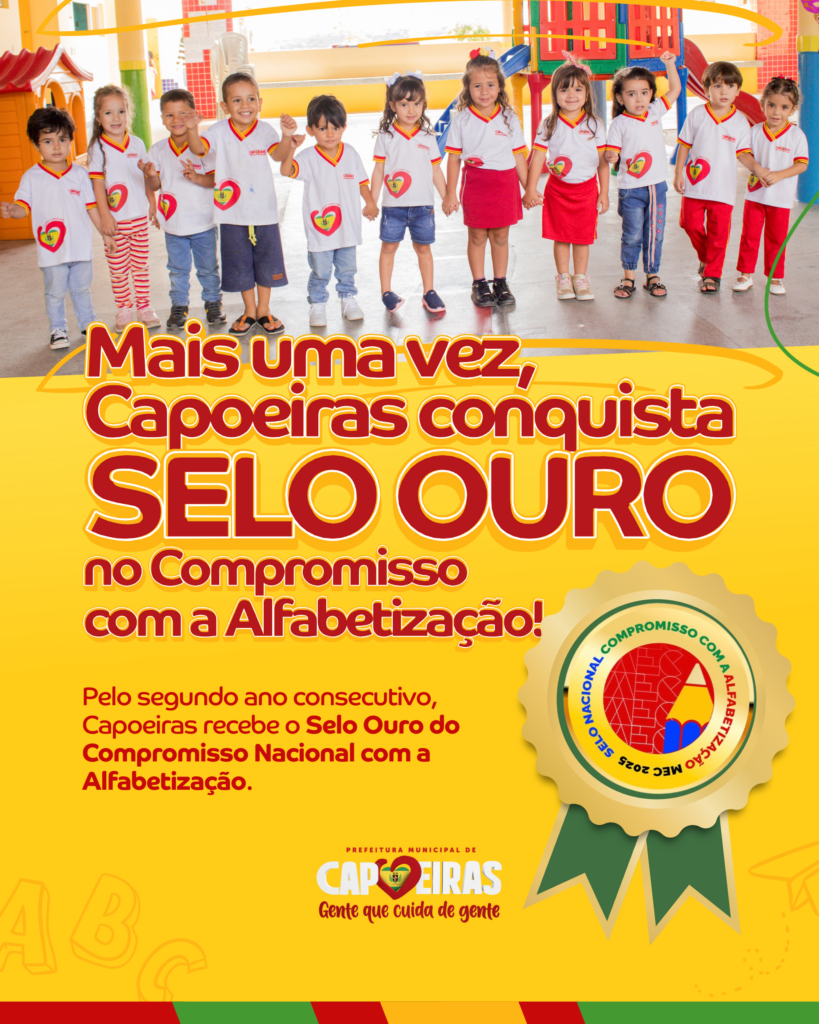 O município de Capoeiras conquistou, pelo segundo ano consecutivo, o Selo Ouro do Compromisso Nacional com a Alfabetização, na edição 2025. O reconhecimento é concedido pelo Ministério da Educação (MEC) e destaca os municípios que se comprometem com políticas públicas eficazes voltadas à alfabetização das crianças.