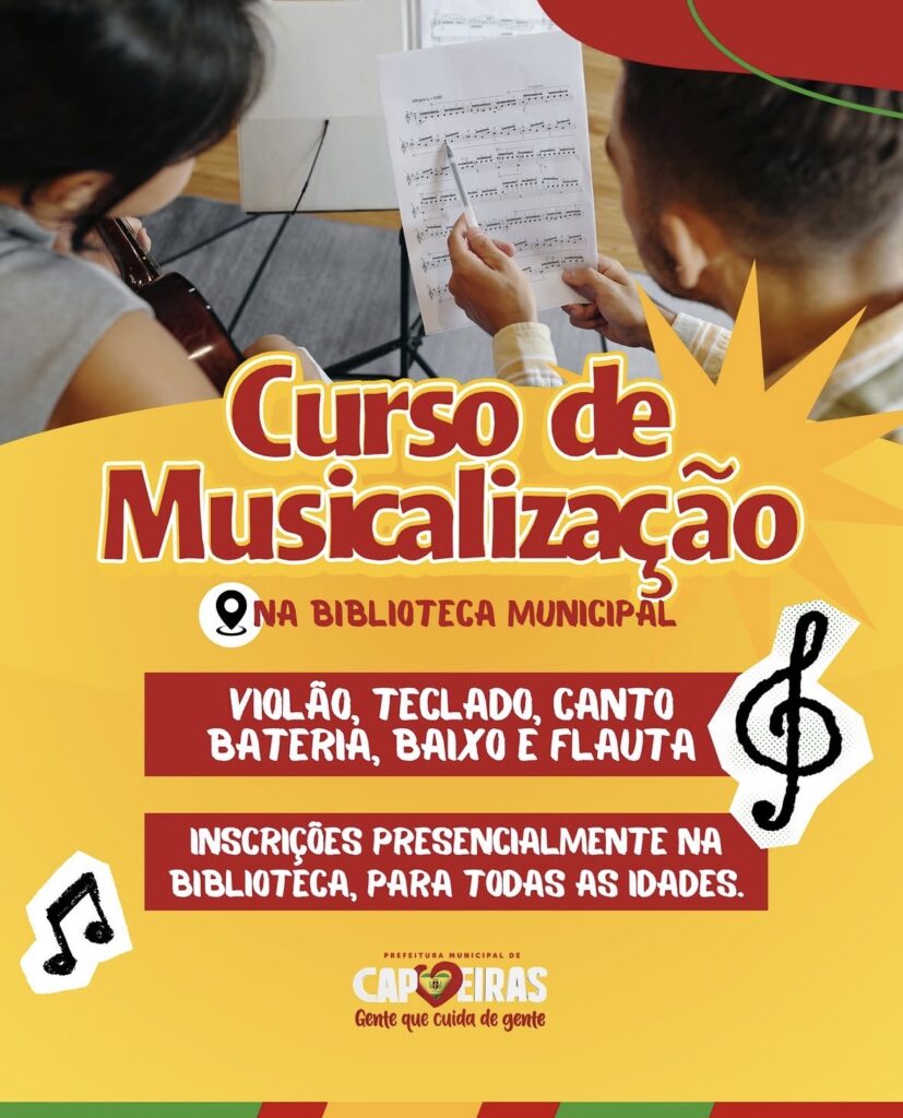 A Prefeitura de Capoeiras informa que estão abertas as inscrições presenciais para o Curso de Musicalização, realizado na Biblioteca Municipal.