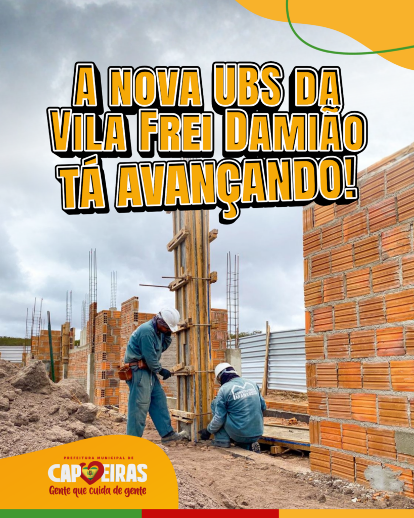 A construção da Unidade Básica de Saúde (UBS) da Vila Frei Damião já é uma realidade e segue em pleno andamento. A obra representa um importante avanço na área da saúde e reforça o compromisso da gestão municipal em ampliar e qualificar o acesso aos serviços de atenção básica.