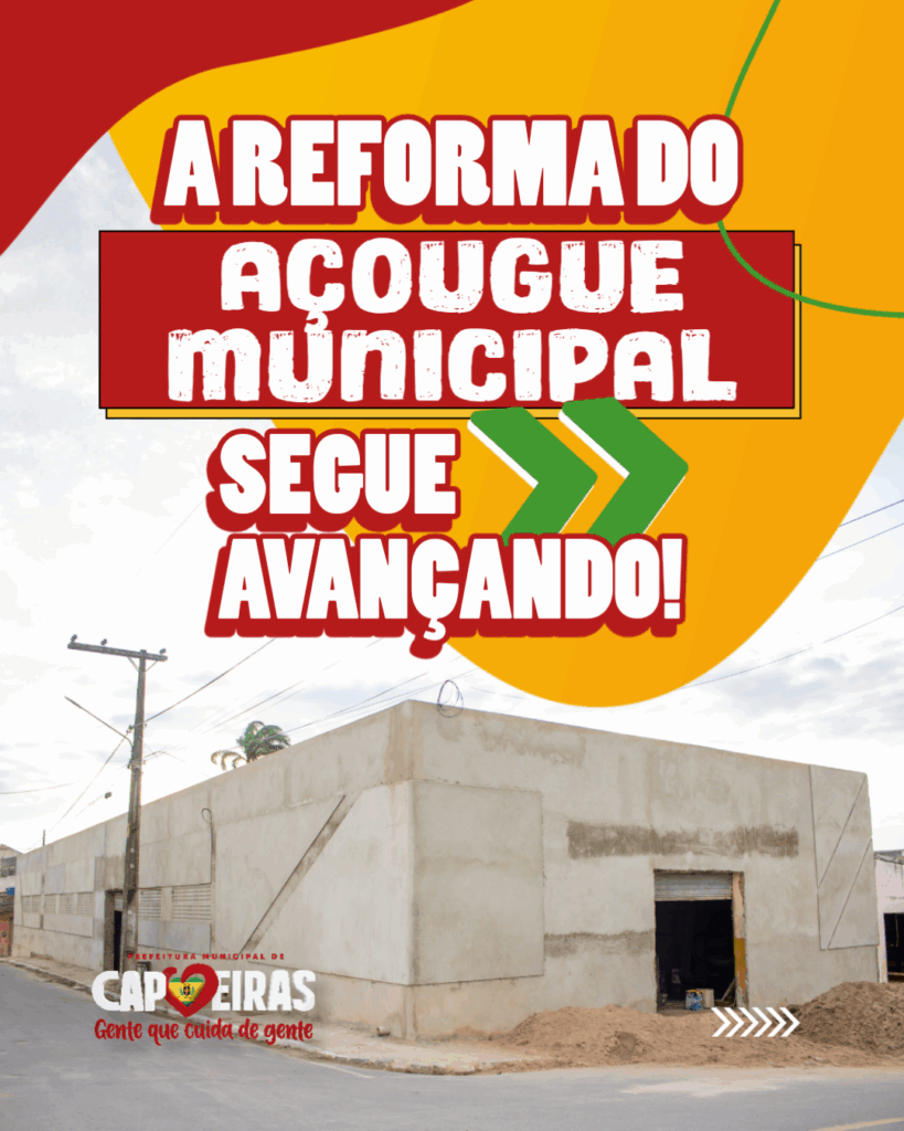As obras de reforma do Açougue Municipal de Capoeiras seguem em ritmo acelerado. O espaço está passando por uma completa revitalização, com o objetivo de oferecer melhores condições de trabalho aos comerciantes e mais conforto, segurança e higiene para os consumidores.