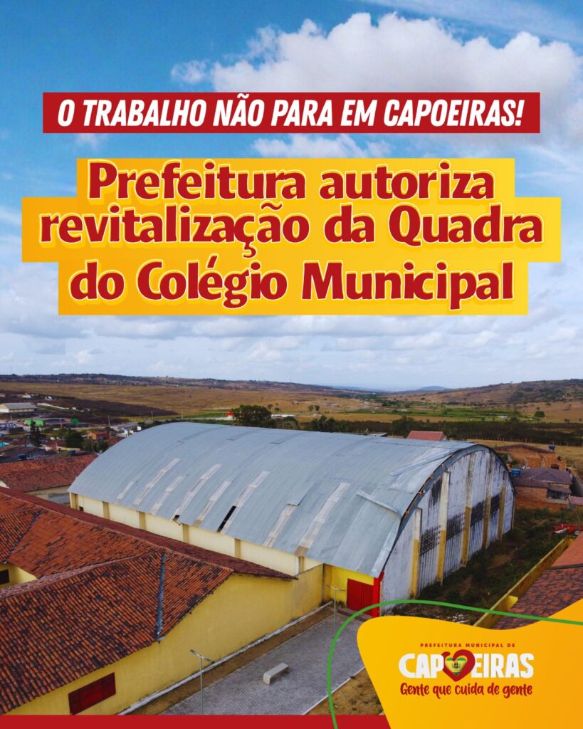 A Prefeitura de Capoeiras deu mais um passo importante para o fortalecimento da educação e do esporte no município ao autorizar, nesta segunda-feira, a revitalização da Quadra do Colégio Municipal de Capoeiras. O espaço é fundamental para a prática esportiva, para o desenvolvimento de atividades escolares e para a convivência dos estudantes.
