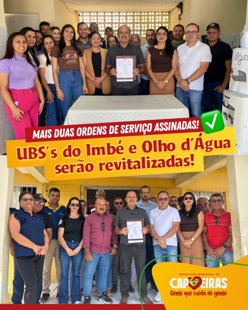 A Prefeitura de Capoeiras segue avançando com investimentos importantes na área da saúde. Nesta sexta-feira (28), a gestão municipal autorizou a Ordem de Serviço para a revitalização de duas Unidades Básicas de Saúde localizadas na zona rural: os PSFs dos Sítios Olho D’Água e Imbé.