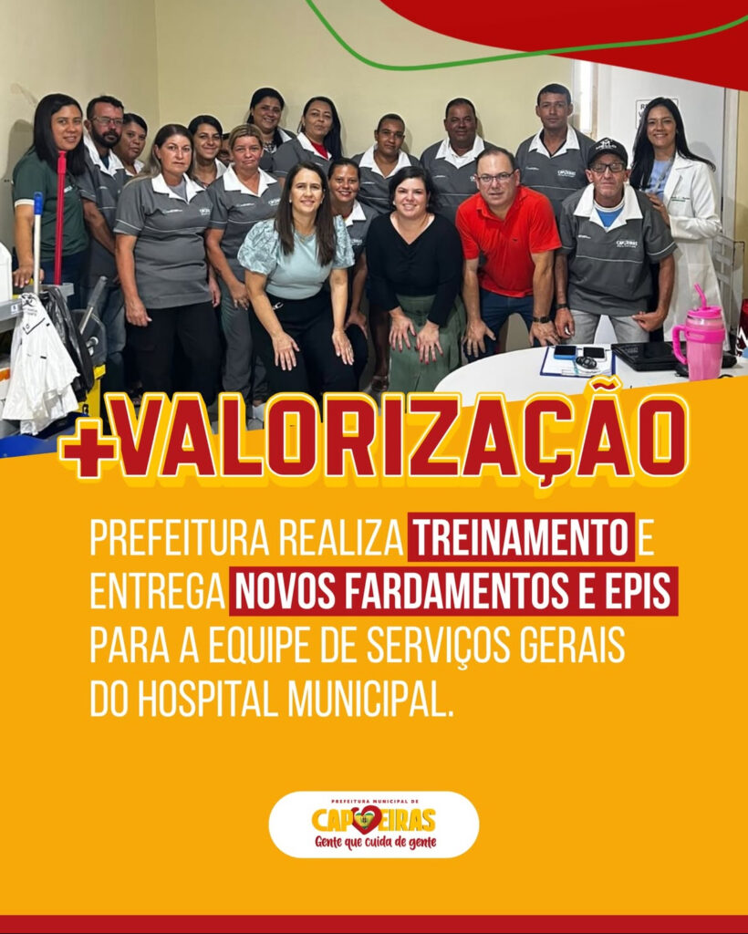 A Prefeitura Municipal de Capoeiras realizou um importante treinamento e fez a entrega de novos fardamentos e Equipamentos de Proteção Individual (EPIs) aos profissionais de serviços gerais do Hospital Municipal. A iniciativa reforça o compromisso da gestão em valorizar quem cuida da população diariamente, garantindo melhores condições de trabalho e mais segurança no exercício das atividades.